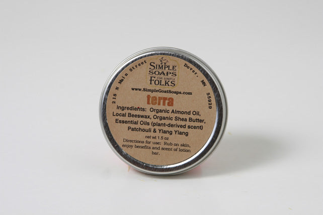 Terra, another word for earth, was created for all the Patchouli addicts out there who couldn't get enough of it from the Patchouli/Ylang Ylang soap bar! Several customers have remarked that they wear this lotion as a "perfume" of sorts. Groovy! Patchouli proves helpful in healing cracked or inflamed skin, acne, dermatitis, and eczema as well as tightening and toning the skin. It also helps regulate oily skin and dandruff. Ylang Ylang, the other incredible essential oil in this lotion, is known as an antidepressant, relaxant to the body, mind, and spirit, and is a reputed aphrodisiac. It calms anger, releases tension, lifts depression, and stabilizes mood swings. Hey, man, get in touch with your inner hippie with this solid hand lotion!